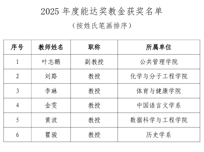 近日,本科生院公布2025年度能达奖教金评审结果,我系瞿骏教授荣获该奖励。能达奖教金旨在表彰爱岗敬业、在教学岗位上作出突出贡献的教师,每年评选一次。