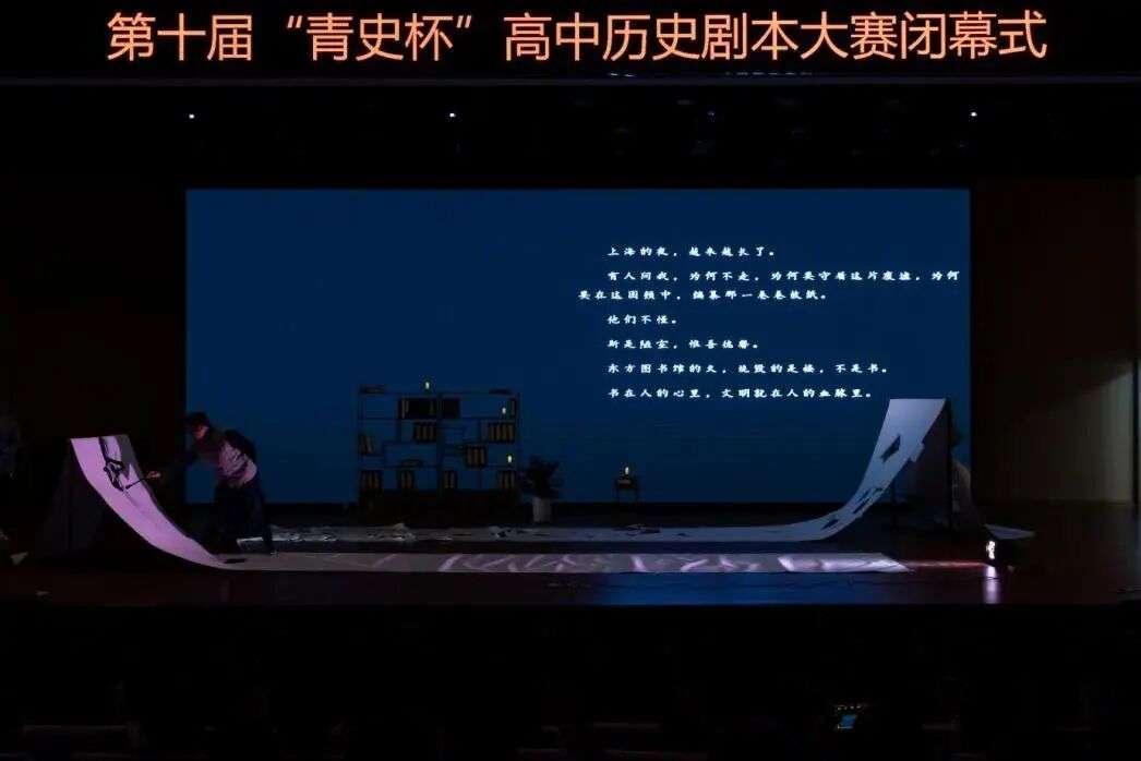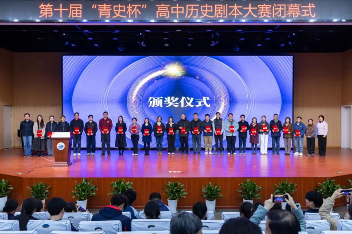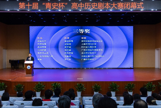 12月3日下午,由华东师范大学教育集团、ag真人 等单位主办的第十届“青史杯”高中生历史剧本大赛闭幕式在上海市闵行中学举行,华东师范大学青年史学社第九届“镜•相”历史剧同期演出。我校党委副书记孟钟捷到会致辞,我系党委书记瞿骏应邀致辞,系党委副书记王应宪、副系主任朱明、王进锋,《历史教学问题》副主编李月琴、大中小学历史教育研究与实践基地负责人黄爱梅、历史教育教研室主任徐继玲应邀出席,青年史学社指导教师蔡慧贤、社长刘传博带队演出,我系六十余名同学现场观摩学习。