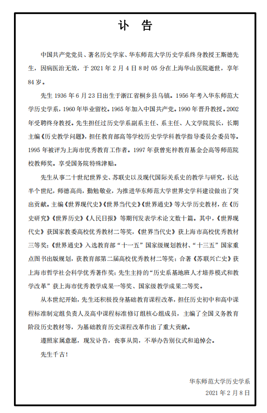 沉痛悼念王斯德先生